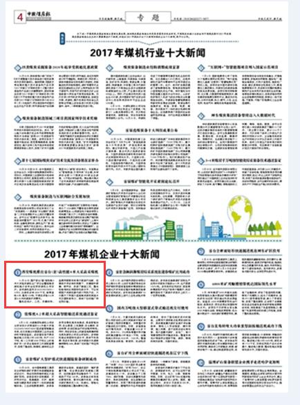 中國煤炭報:2017年煤機企業(yè)十大新聞