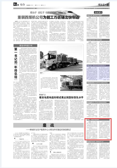 陜工報(bào):西煤機(jī)一項(xiàng)目通過科技成果鑒定