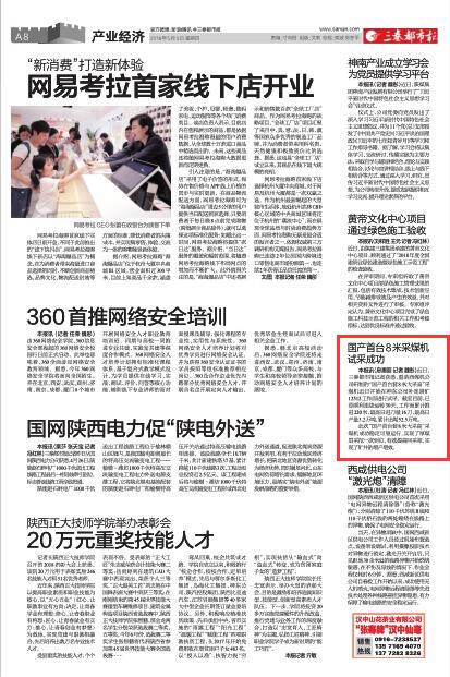 本報訊(息惠麗記者魏彤)近日,三秦都市報記者獲悉,重裝西煤機公司研制的“國產首臺套8米大采高”采煤機近日開始在神東公司補連塔礦12512工作面進行試采。截至目前,已經順利連續(xù)運轉30天,工作面累計推進220米,最高日進刀量16刀,最高日產量3.2萬噸,累計出煤52.5萬噸。