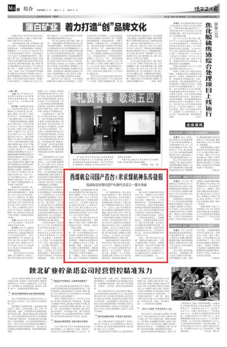 陜工報(bào):西煤機(jī)公司國(guó)產(chǎn)首臺(tái)8米采煤機(jī)神東傳捷報(bào)