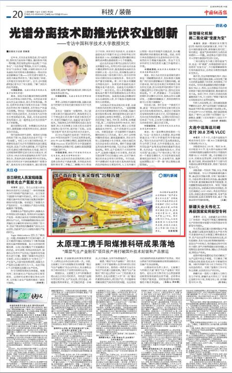 中國(guó)能源報(bào):國(guó)產(chǎn)首臺(tái)套8米采煤機(jī)“出師告捷”