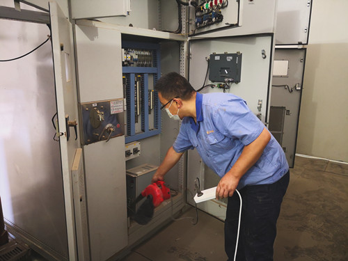 電力設(shè)備技術(shù)組進(jìn)行裝置除塵保障運(yùn)行