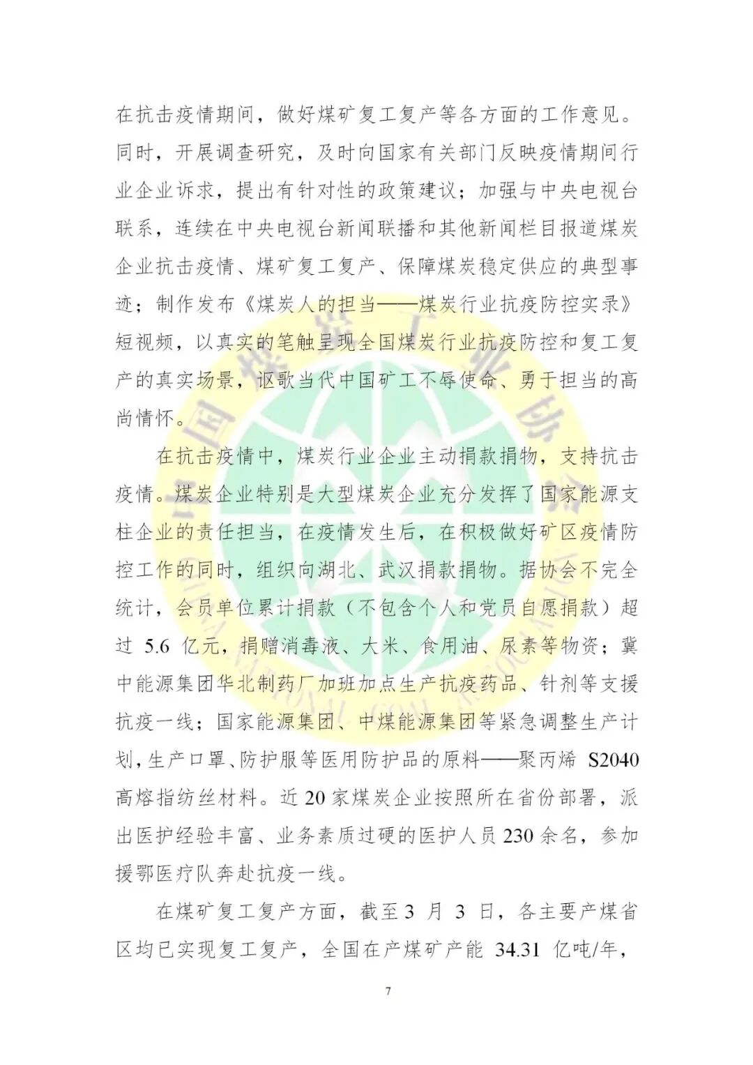 報(bào)告介紹了新冠疫情爆發(fā)以來(lái)煤炭行業(yè)企業(yè)抗疫保供、推動(dòng)復(fù)工復(fù)產(chǎn)的基本情況。指出,今年年初新冠肺炎疫情爆發(fā)以來(lái),煤炭行業(yè)講政治、顧大局、講奉獻(xiàn),積極應(yīng)對(duì)新冠肺炎疫情挑戰(zhàn),加快推進(jìn)煤礦復(fù)工復(fù)產(chǎn),做好常態(tài)化疫情防控工作,實(shí)現(xiàn)了全國(guó)煤炭供應(yīng)平穩(wěn)有序,保障了特殊時(shí)期的煤炭供應(yīng)。