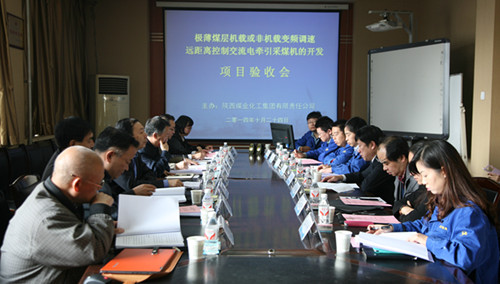 10月24日上午,西安煤機公司承擔完成的“極薄煤層機載或非機載變頻調速遠距離控制交流電牽引采煤機”項目順利通過陜西煤業(yè)化工集團專家組驗收。