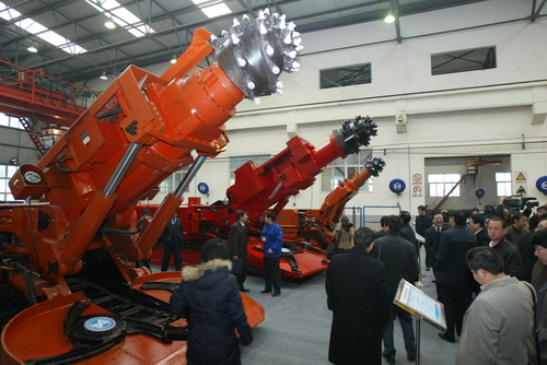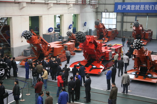 上午八點二十分,參加會議的各位領(lǐng)導專家就來到西安煤礦機械有限公司生產(chǎn)現(xiàn)場考查,查看采煤機、掘進機樣機。之后,陜西煤業(yè)化工集團副總經(jīng)理朱周岐在建國飯店會務中心主持召開了產(chǎn)品推介會。