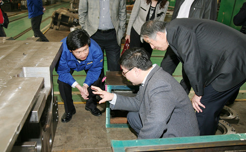 在研討活動中,公司的高管和產品研發(fā)人員向魏炳波院士和省市科協(xié)的相關領導介紹了采煤機生產制造過程、搖臂的鑄鍛工藝,以及目前在材料應用、研究中存在的難點和問題。