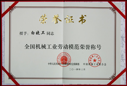 公司員工白曉衛(wèi)當選全國機械工業(yè)勞動模范